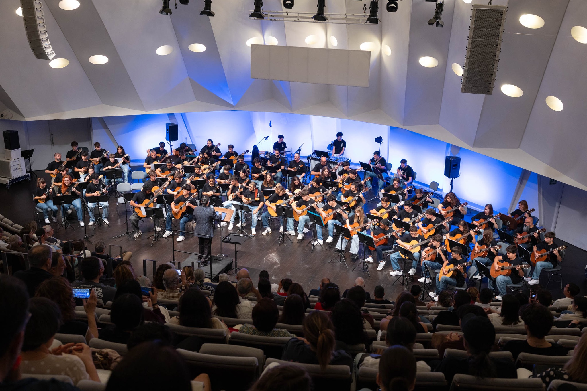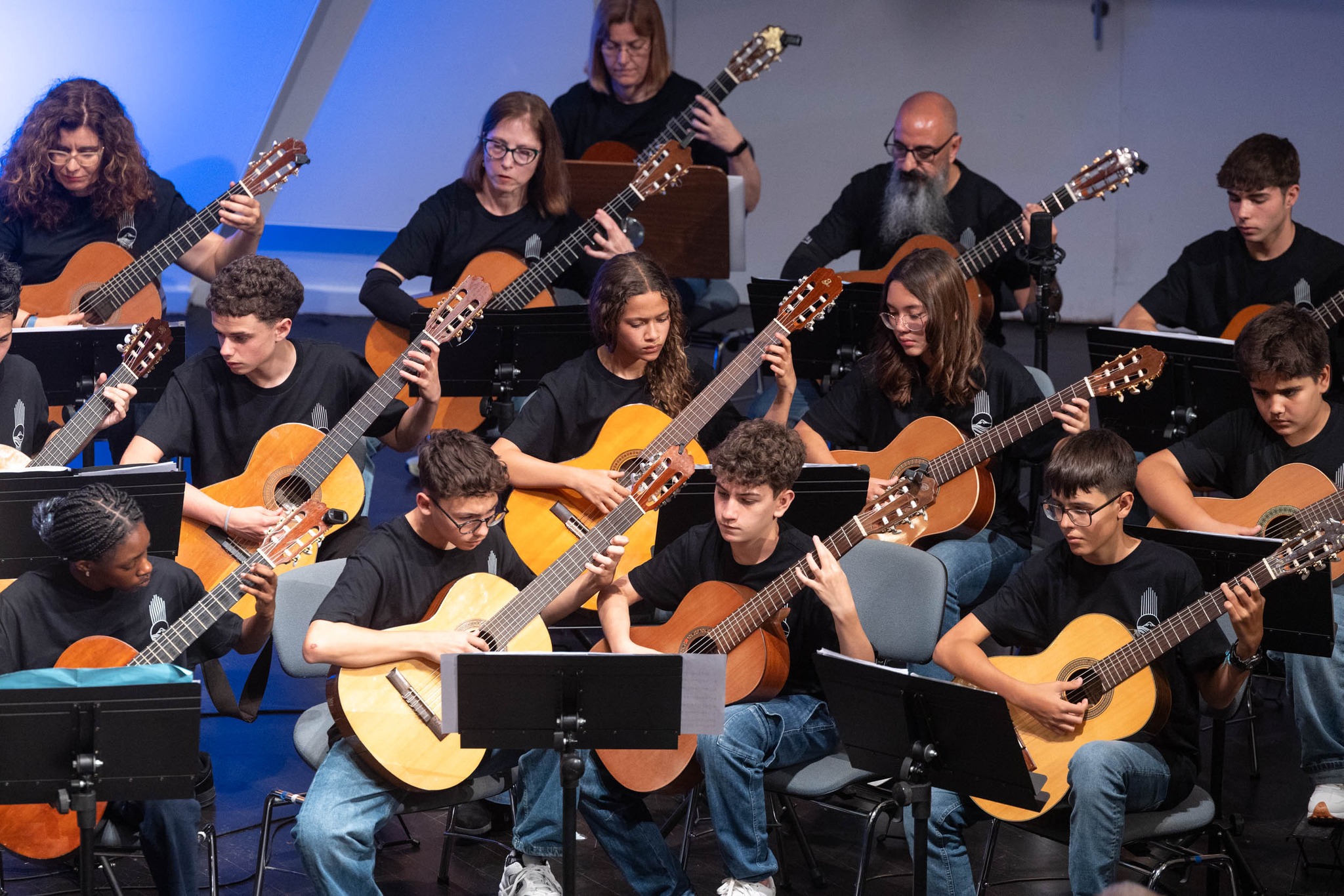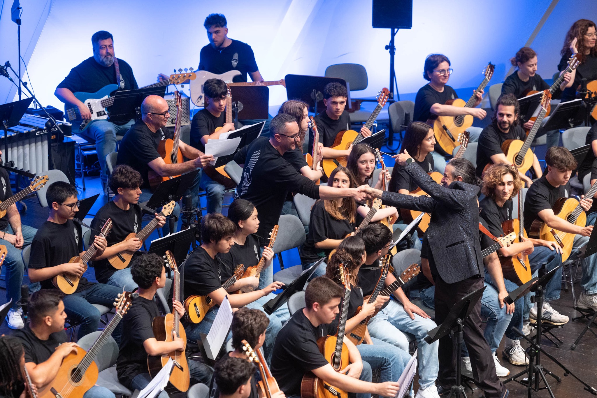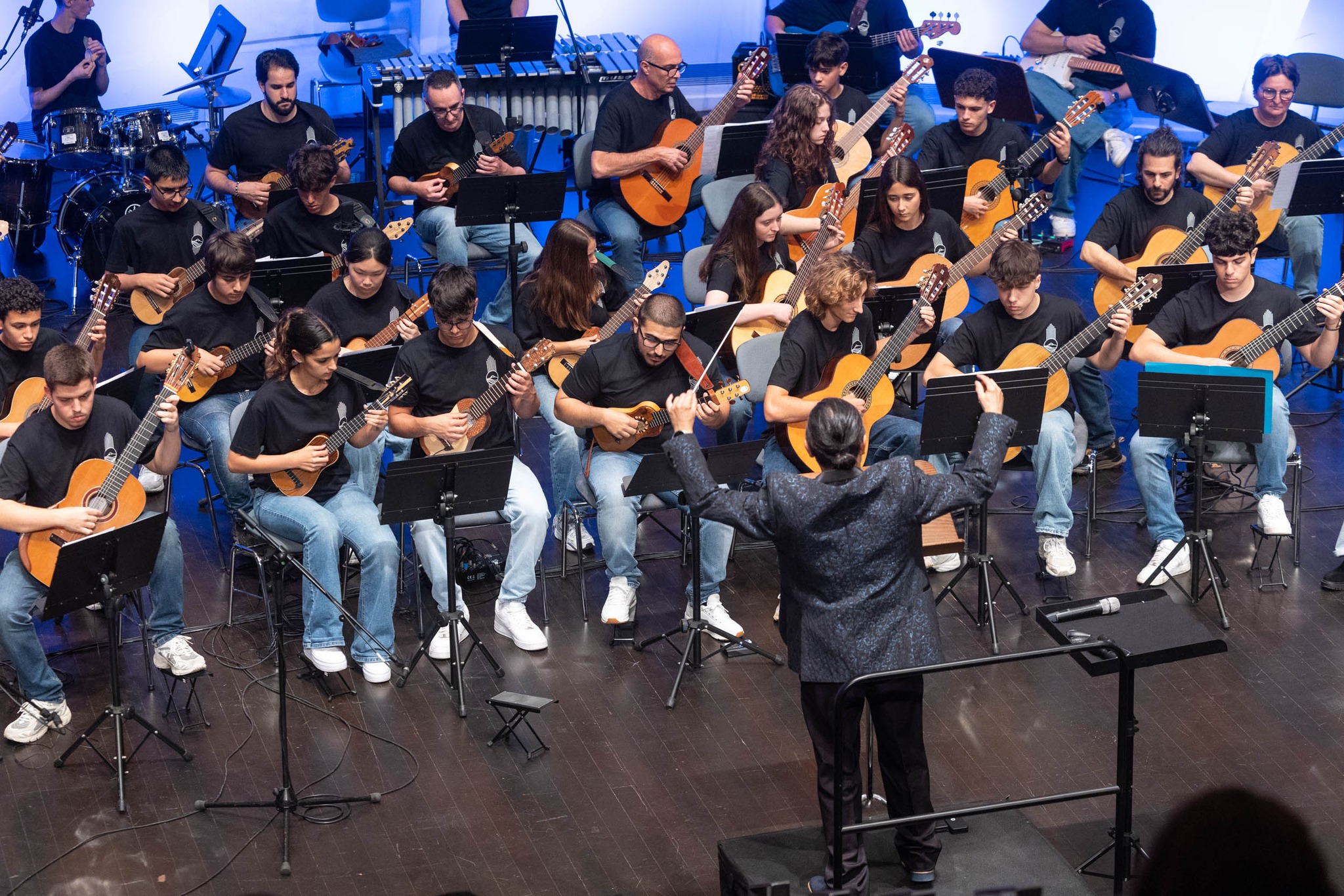 El pasado sábado 18 de abril de 2026, en la Sala de Cámara del Auditorio de Tenerife, conseguimos reunir a más de 80 músicos en el escenario. Timplistas, guitarristas, alumnado de distintas escuelas de la provincia de Tenerife, profesorado… y una gran parte de nuestra propia casa: el Conservatorio Profesional de Música de Santa Cruz de Tenerife.