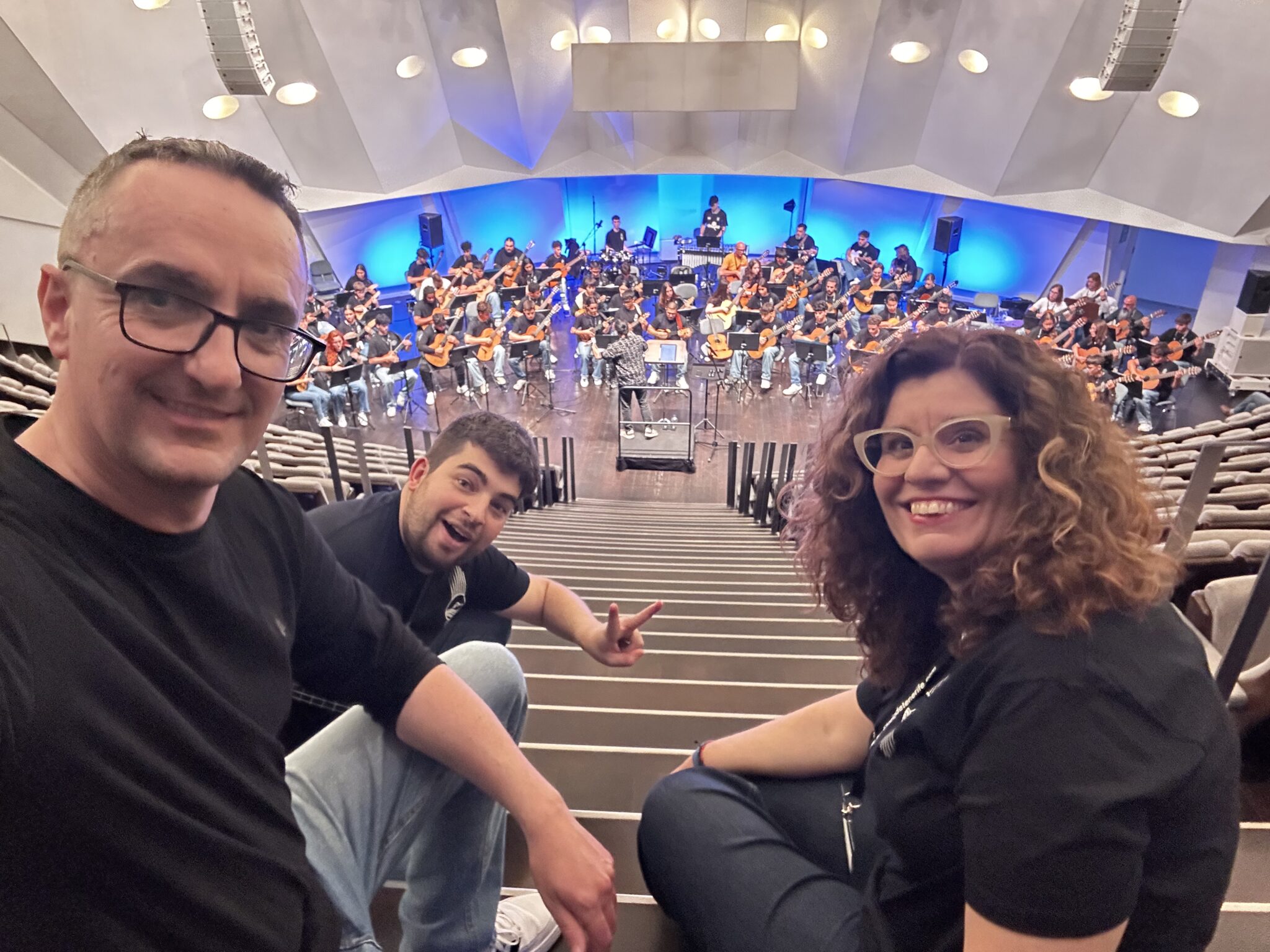Sería imposible nombrar a todos los alumnos timplistas y guitarristas que estuvieron sobre el escenario, pero sí creo justo reconocer a quienes están detrás de ellos. Mi maestra y buena amiga Almudena Hernández, junto a Susana Jorge, Rafael Batista, Lus Marina, Esther González, David Duque y Josele del Pino, que aceptó nuestra invitación a participar.
