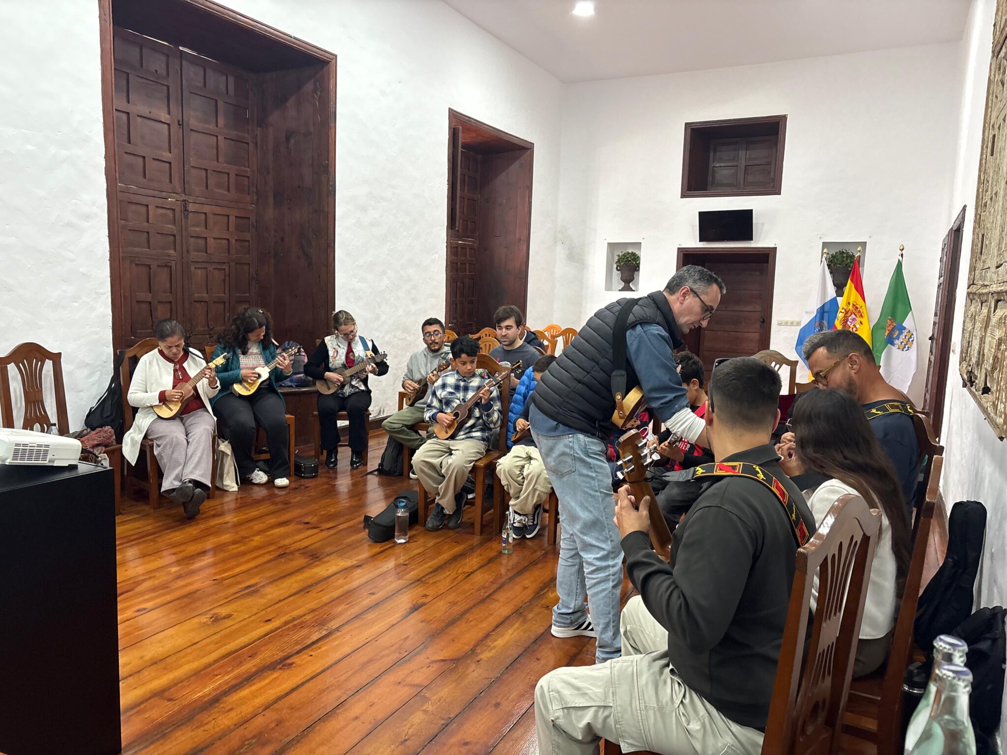 Tuve el honor de impartir una masterclass en Lanzarote, en el mejor escenario posible: la Casa Museo del Timple. El sábado 11 de abril, la primera sesión, de tres horas por la mañana, estuvo dirigida al alumnado más avanzado. Nos centramos en técnica de mano izquierda y derecha, improvisación, rasgueos, combinación de patrones y sustituciones de acordes. También abordamos las piezas que trajeron, resolviendo pasajes difíciles y mejorando la interpretación.