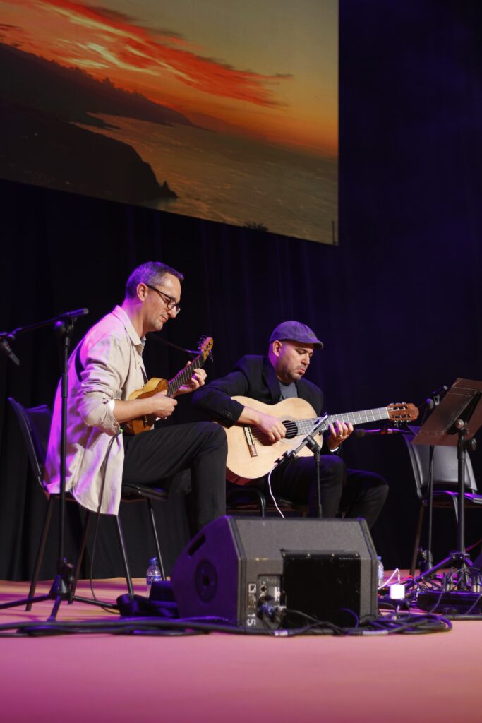 TimpleNdanzas es un espectáculo escénico de una hora de duración que fusiona música instrumental, canción, danza contemporánea y elementos visuales, ofreciendo una experiencia artística dinámica y profundamente vinculada a la identidad cultural canaria. La propuesta combina composiciones propias, repertorio tradicional y obras populares reinterpretadas desde una estética actual, siempre con el timple como eje expresivo.